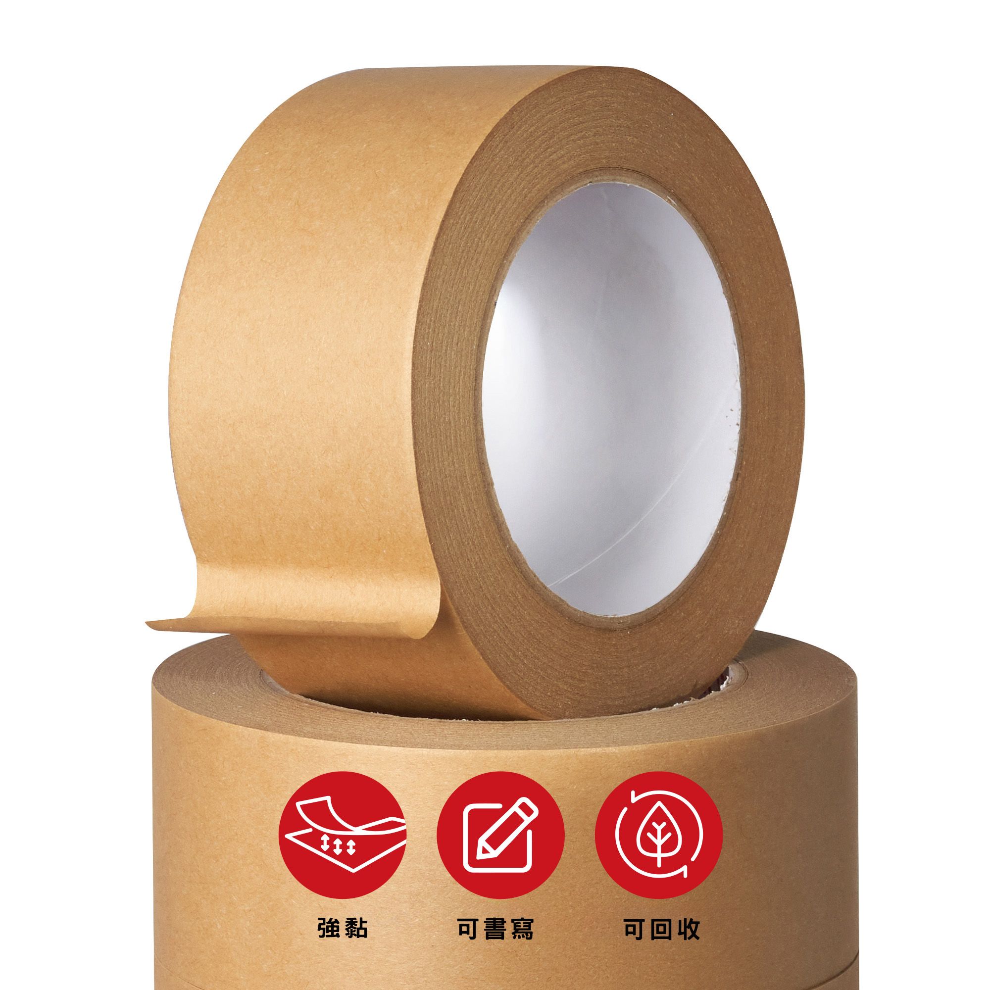 與傳統塑膠膠帶不同,本產品100% 不含塑膠,可與紙箱一同回收,符合環保與永續包裝標準,是塑膠封箱膠帶的理想替代品。